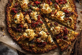 The best cauliflower crust recipe for a crisp-tender base topped with rich Sicilian-inspired flavor.