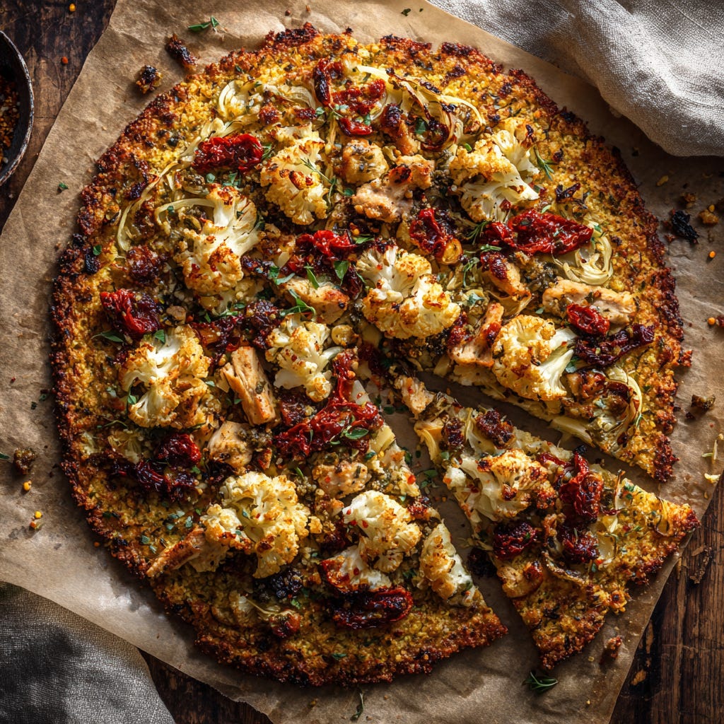 The best cauliflower crust recipe for a crisp-tender base topped with rich Sicilian-inspired flavor.