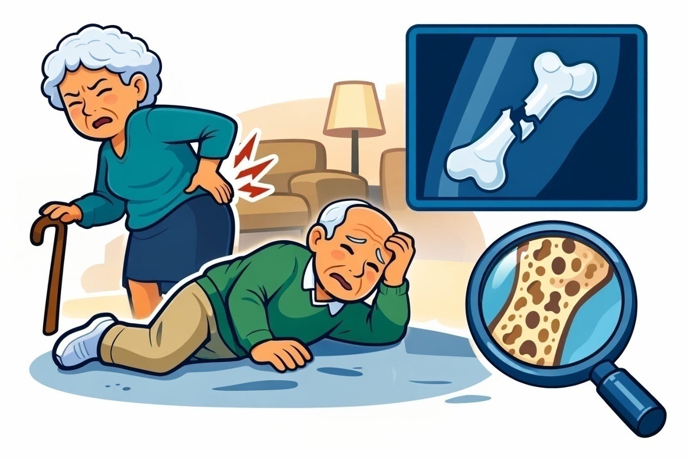 Margaret, 67, was standing in her kitchen, reached across the counter, and felt something give in her wrist. The ER confirmed a fracture. Her doctor ordered a bone density scan. The result came back: severe osteoporosis.